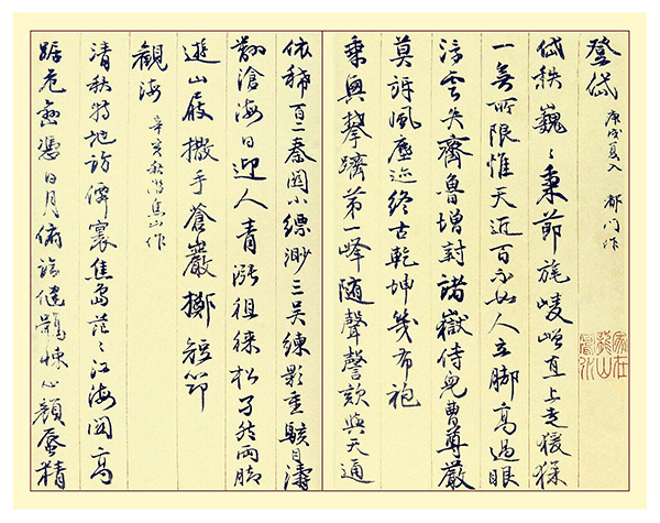 縱觀鄧石如一生,他雖少產窮鄉,家復貧寒,但客江寧梅氏家八載,廣窺名跡,苦攻篆書五年、隸書三年,兼及楷草,由石刻而冥追古人之法,縱橫闔辟,深精四體,蔚成大家。后以書刻游京師,聲名鵲起,震動公卿,當時身居高位、負有盛名的貴官翁方綱因鄧石如赴京后未登門拜訪,或因二人書風不合,極力詆毀鄧石如。鄧石如處此逆境,不為所動,意志彌堅,彰顯了一代書家勇于特立獨行的品格與意志。后鄧石如遭迫害,憤然離京,仍以鬻書自給,芒鞋竹杖,廣游山水,悠然千里,自號笈游道人,布衣終生。