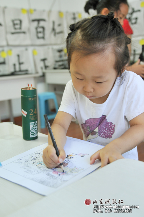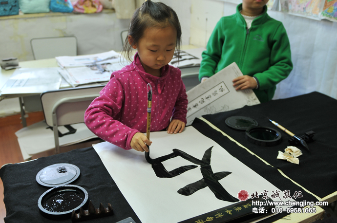 妞妞是3歲開始接觸書法的,記得那時是因為姐姐的緣故,姐姐要上學了,但一直比較調皮、活躍,我擔心她上學后不能專心聽講,就到處打聽有什么教育機構是訓練專注力的。也許是有這個福報,馬上有朋友介紹了楊淑芬老師的通州小院。因為聽說過楊老師在湯池小鎮傳播傳統文化的事跡,我毫不猶豫地帶孩子住進了通州小院。在那里,第一次接觸了《弟子規》、《了凡四訓》、定心描紅、書法、太極……在安靜、祥和的氛圍下,經典不斷地撞擊著心靈,以前的混沌開始散去,對孩子的教育有了清晰的方向。從此,與楊老師書法結下了深厚的緣分。