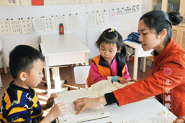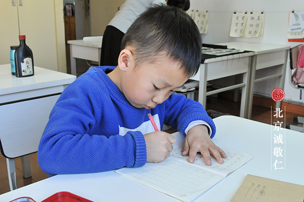 我不解,一天下來,孩子要完成那么多學習任務,老師是怎么帶他們的?遇到不按要求做或者拖拖拉拉做的孩子時,老師們難道不發火,心里不煩躁嗎?原先的幼兒園有各種活動,吃喝玩樂嘛,小孩子喜歡很正常。現在全天來書法教室了,來到一個有更多要求的環境里,在我想象中,古板的老師,繁瑣的禮節,嚴格的書寫,貪玩的小孩,你能受得了嗎?在這樣一種近乎傳說的學習古圣先賢思想的德藝雙馨教學模式下,培養出的孩子,真能與今天的社會相適應嗎?在我們都忘記了見面鞠躬行禮的今天,重新學習問候禮節還有那么必須嗎?我偷偷地觀察著、感受著這里的一切。