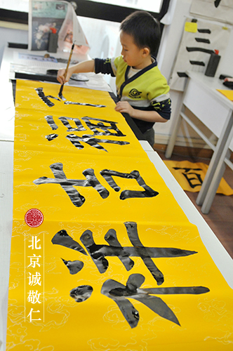 我發現,原來楊老師書法教室的氣氛總是讓孩子很放松,很自在,即便是天天去也很歡喜。這是我接送孩子逐漸體會到的。像他爸爸就曾納悶地說:「寫一天的字,那么個小教室,也不覺得枯燥,孩子居然還喜歡去!」