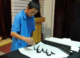 來自青海玉樹的同學,是一位憨厚的藏族學生,年僅十四歲。接受我們的采訪時,紅撲撲的臉上始終洋溢著動人而淳樸的笑容。為期三十多天的學習,朋措從書法的基本筆畫一直學習到書法字。在老師們的悉心教導下,在「永字八法」的科學引導下,朋措常常揮毫到深夜還戀戀不舍,忘我地愛上了書法,愛上了太極。更令人歡喜的是,在書法和太極的熏習中,朋措發現了學習的法寶——靜定,并高興地說:「靜定功夫能讓上課聽講專心,進步很快。」相信這個回答是最令老師欣慰的回報。而小院餐廳為大家提供的健康素食,令朋措更是如獲至寶地說,回家以后不想吃肉了。學習生活的收獲,讓小朋措學會了感恩和付出,無怪乎,餐廳里常常見到他穿梭的身影,擦桌子、擺椅子,忙得不亦樂乎,這份勞動的歡喜,也是學習班傳授給孩子和家長的法寶啊。