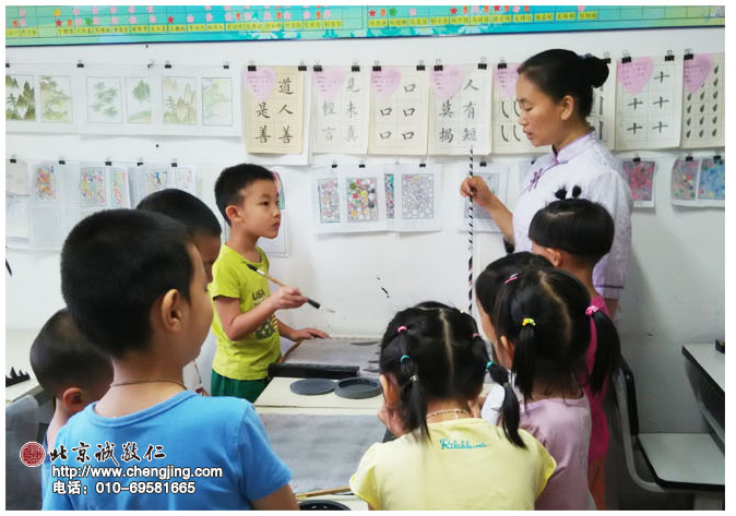 ![]() 老師在給同學們講解書法規矩,這可是學習書法最重要的一個環節哦,凡事慎于始,有好的開端,才能結出好的果實。優優作示范,配合老師,演示給學弟學妹們觀摩效仿。