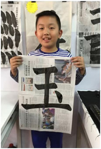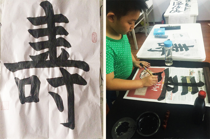 他的父母非常重視書法的學習,每周都按時來教室學習書法。