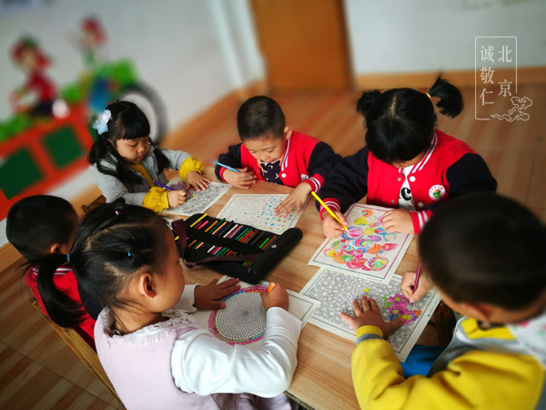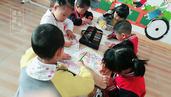 福建省武夷山市花朵幼兒園,在2016年開始應用多元德藝教學法,開展經典誦讀、定心描紅、快樂《彩繪》等特色教學。孩子們最大的改變是:通過彩繪、描紅,增長了定力,原來鬧哄哄的教室,也慢慢變得安靜。 不同年齡 不同的重點 幼兒班的孩子小,“不能特別要求”他們,孩子們拿著畫筆自由涂色,享受探知小手能力、感受色彩的過程,同時也練習握筆。 小班階段,讓孩子們嘗試涂色在圖形里,提高手控能力。中班階段,引導孩子們嘗試順著圖案的方向,線條從頭連貫到尾。 大班階段,鼓勵孩子們嘗試對畫面進行改繪,加入自己的創(chuàng)意,同時注意畫面的整潔,培養(yǎng)他們保持活力又不失慎重的做事原則。