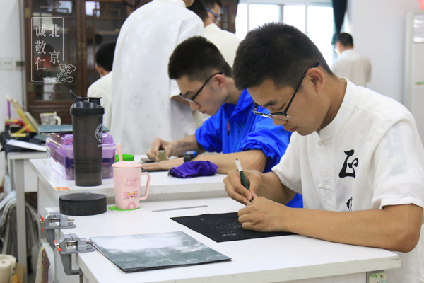 嚴師方能出高徒 與以往篆刻班不同,楊老師此次親自帶班,更看重大家基本功的熟練扎實,不偷懶,不取捷徑,方能為日后篆刻學習打下深厚基礎。 開班第一天,楊老師再三強調了篆刻學習期間幾點注意事項: 1.此次學習不在意大家篆刻進度如何,而著重嚴格要求大家每一步驟精準扎實,方可過關進行下一步。 2.不可有攀比心,心越急反倒會越差,人與人生來資質就有所不同,專注于當下才是最重要的。 3.篆刻班規(guī):不可掉刀掉石,凡不小心掉者禁刀兩天,第二次犯者除去此次篆刻學習機會。 楊老師勉勵大家在篆刻學習中要能深習靜定功夫,挑戰(zhàn)自己,不懼失敗,磨練抗挫抗壓能力。