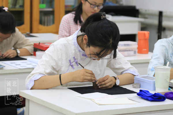 每個人領取到的印石材質各異,有的印石材質很軟,有的很硬。老師告訴同學們,無論遇到怎樣的境界,都是自己內心的寫照,找準方法,沉下心來,慢慢突破自己,怎樣的問題都會得到克服。 直線曲線:簡單線條中方見真功夫