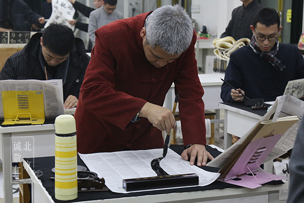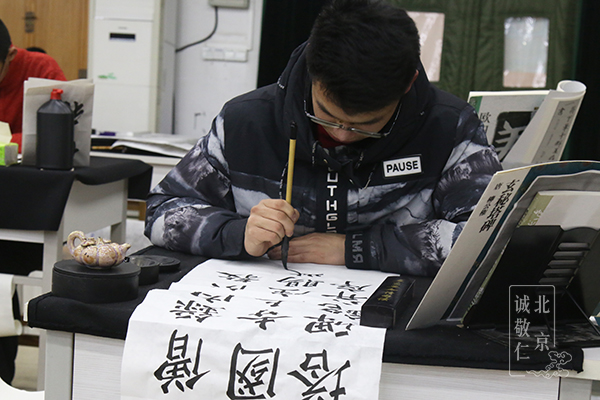和毛筆相處還好嗎?學(xué)習(xí)書法好處知多少? 怡情養(yǎng)性:在大家的專注、認(rèn)真書寫中,仿佛時(shí)間都靜止了,雜念沒有了,對(duì)筆法、力道、結(jié)構(gòu)的掌握有很大進(jìn)步呢! 學(xué)無止境:有大字、中字、小字,有篆、隸、行、楷、草,有歐、顏、柳、趙......簡(jiǎn)直就是翰墨海洋,只要按部就班、不疾不徐,你就會(huì)擁有! 我們先來看看大家的學(xué)習(xí)狀態(tài)吧 ~