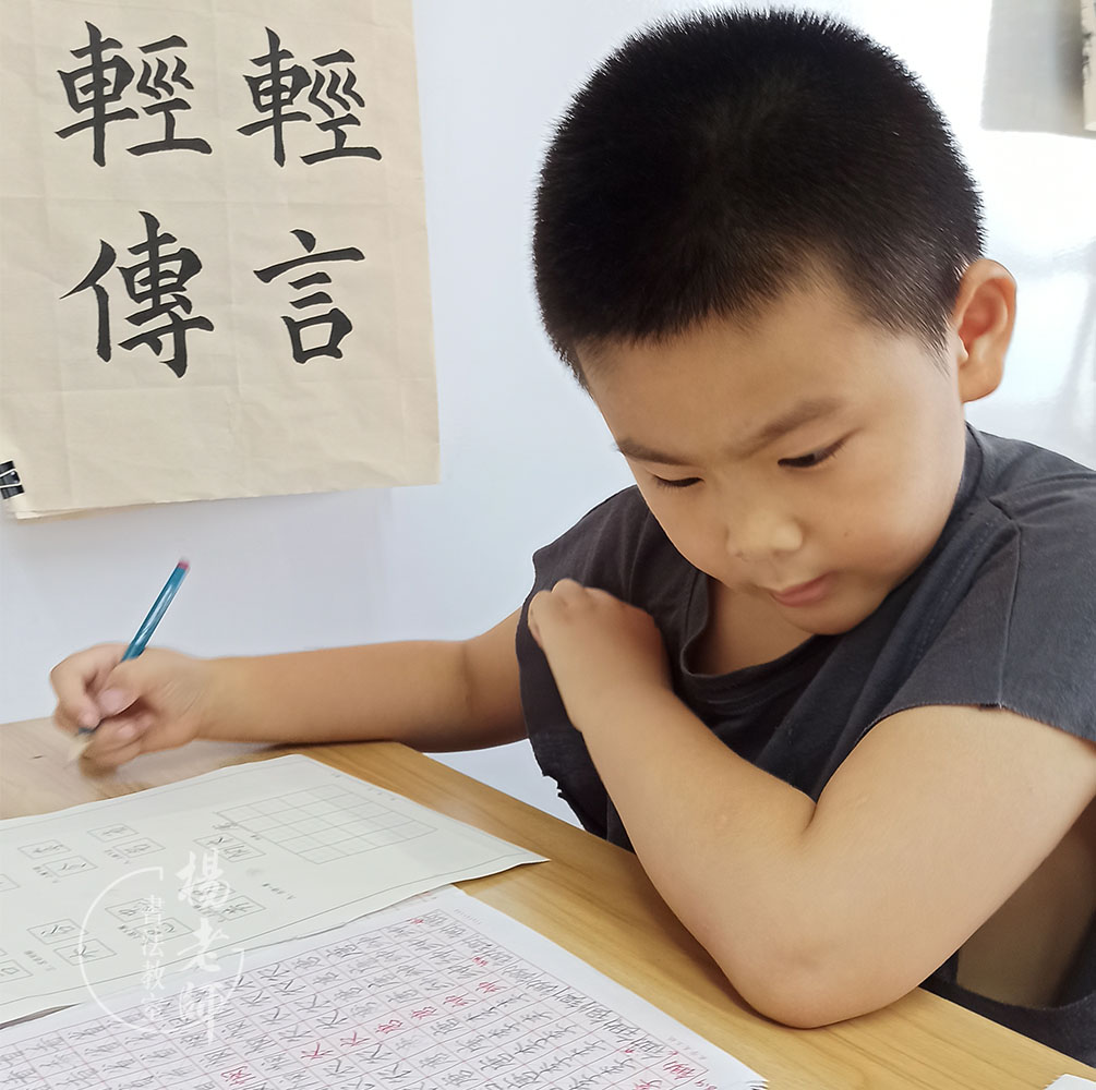 2019年8月,不到五歲的家毅在媽媽的陪伴下,報(bào)了「楊老師書法教室」沈陽(yáng)沈北校區(qū)硬筆學(xué)習(xí)班。老師觀察到他有個(gè)優(yōu)點(diǎn):年齡雖小,卻坐得住。原來他爸爸是軍人,他自己從小也想當(dāng)軍人。于是老師鼓勵(lì)他:練習(xí)書法也要像軍人,有毅力,能堅(jiān)持!他果然超認(rèn)真地在那里練習(xí)。稚嫩的小手、抿著的小嘴、專注的眼神、愛思考的大腦袋。只見他堅(jiān)定地握著筆,一筆一畫地用功呢。這樣的孩子實(shí)在是太可愛了!