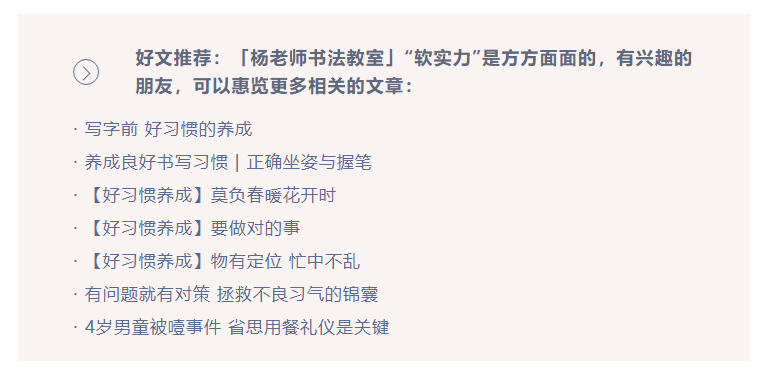 悠悠姥姥提到的“軟實力”,正是「楊老師書法教室」多年踐行“七分德 三分藝”教學理念的真實寫照。