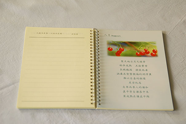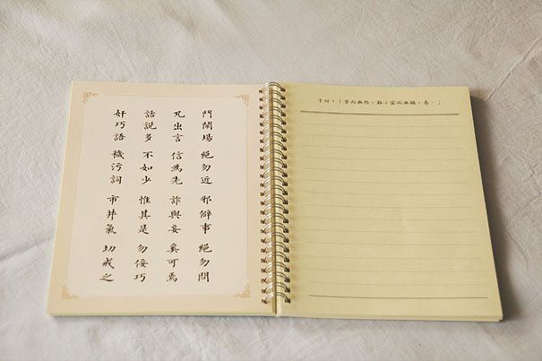 此筆記本由彩頁和黑白頁組成。彩頁正面是優美的配圖散文詩,作者從孝悌,仁愛等方面開顯人的良善本性。反面為《弟子規》正文。黑白頁上方是為人處事的名言佳句。筆記本集實用性與知識性于一體,方便您在書寫的同時,感受箴言的智慧。