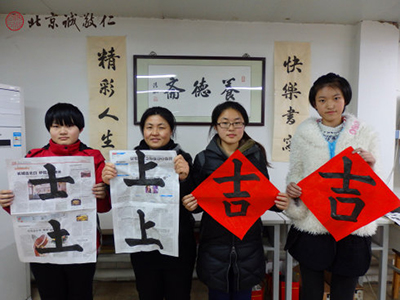 另外,每逢過年的前一個月,已經學習完「永字八法」基本功的學員,書法老師將根據學員學習進度指導學員練習「福、春、招財進寶、對聯」等。