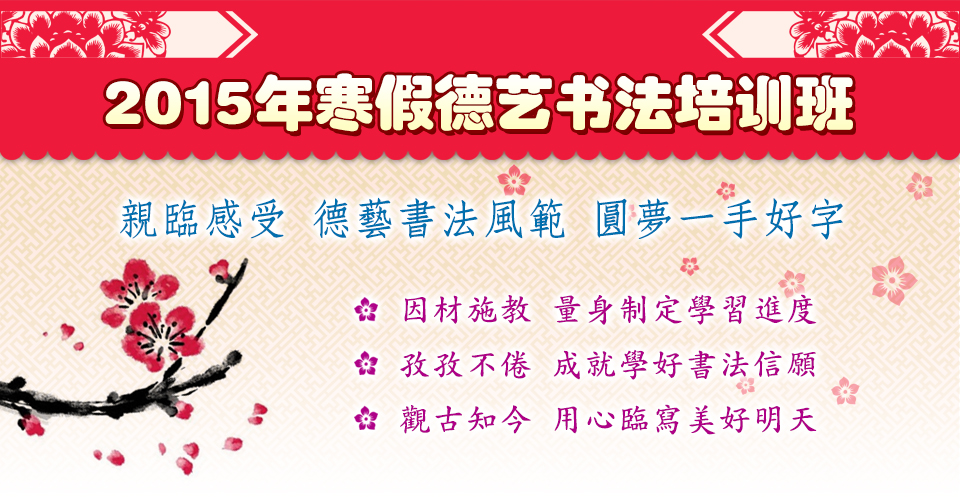 2015年寒假北京誠敬仁將繼續(xù)開辦寒假德藝書法培訓(xùn)班。主講老師為北京誠敬仁著名書法教育家楊淑芬老師及其培養(yǎng)的優(yōu)秀書法老師。