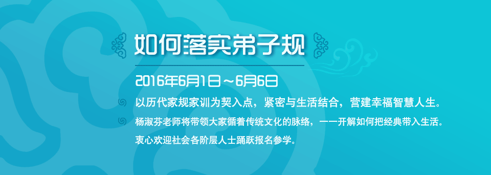 1. 《弟子規》在生活中的落實:以歷代家規家訓為契入點,讓學習者認識傳統文化的價值,并運用《弟子規》這把人生的金鑰匙和幸福的「護身符」,緊密與生活結合,改習性,學做人,提升生活品質,營建幸福智慧人生。
