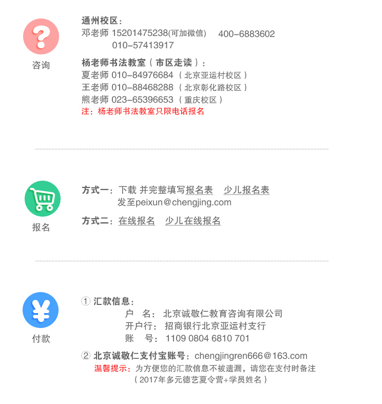 2017年7月11日—30日 第一期 (20天) ;2017年8月5日—19日 第二期 (15天)。
