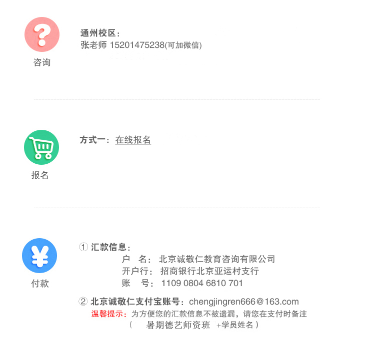備注:參與活動(dòng)須全額付款;因疫情等不可抗力因素外,其他無法參加課程者,不予辦理退費(fèi),費(fèi)用將轉(zhuǎn)為預(yù)存學(xué)費(fèi),可用于其他課程學(xué)習(xí)。