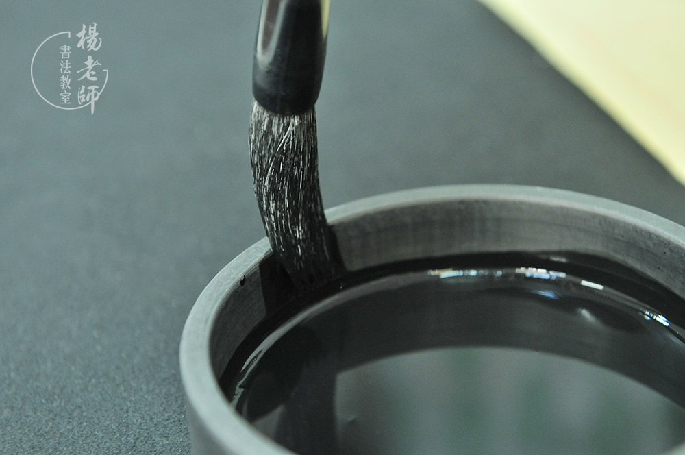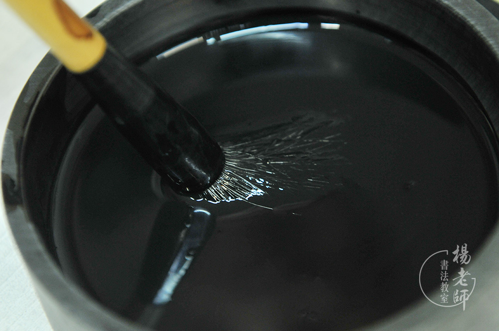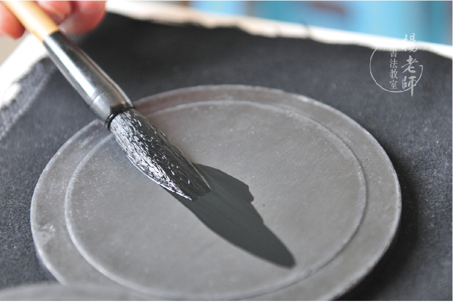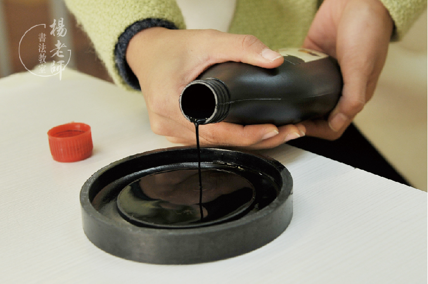 將墨汁倒于硯臺中間
