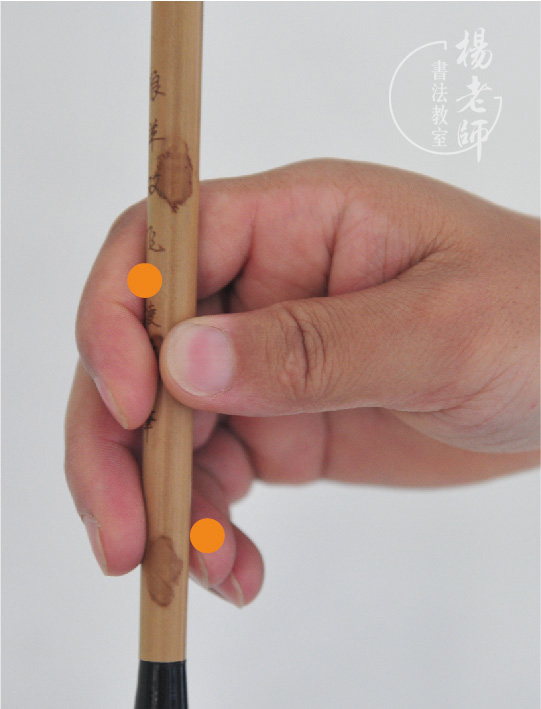 · 無名指 小指靠在毛筆后面固定
