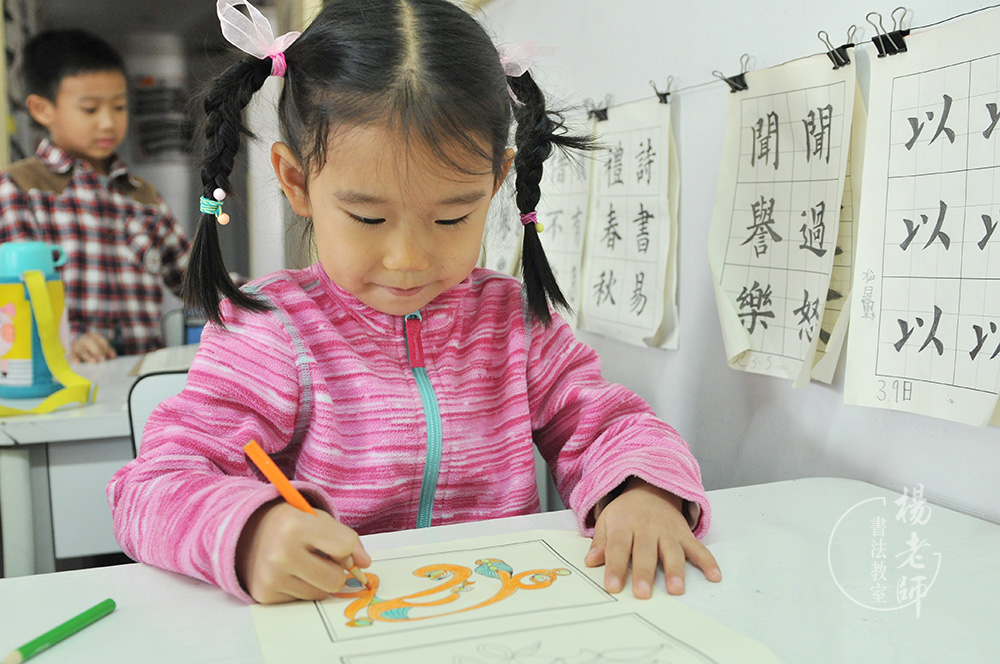 丫丫上了兩年半的公立幼兒園。近兩年,在「楊老師書(shū)法教室」幼兒書(shū)法啟蒙班學(xué)習(xí),前一年半均是一周來(lái)一天。直到大班的最后半年,才完全轉(zhuǎn)入全日制。讓我意想不到的是,丫丫在這短短半年中取得的進(jìn)步,超過(guò)了之前的兩年半。
