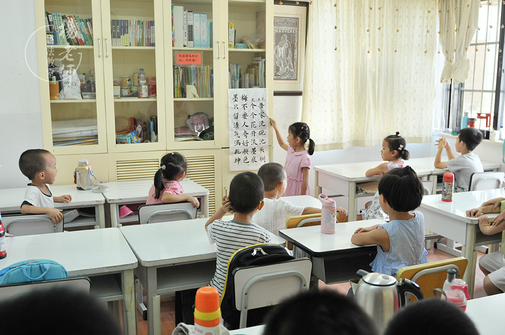 丫丫性格靦腆、內(nèi)向,和幼兒園老師、小朋友的交流都很少。導(dǎo)致她不愛(ài)上幼兒園,每天早上都不太高興,到了大班還時(shí)常掉眼淚。而到書(shū)法教室后,這里的老師們耐心引導(dǎo)她,鍛煉她當(dāng)司儀、大聲讀經(jīng)、整隊(duì)等。還建議我們多放手,不要事事照顧得太周到,孩子自己會(huì)的事情多了,信心增長(zhǎng),就會(huì)變得活潑勇敢。