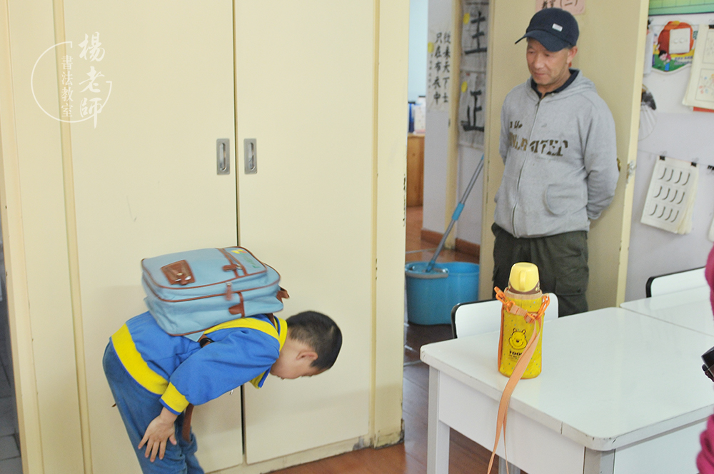 所以我真的很慶幸把祎卿送到「楊老師書(shū)法教室」來(lái)學(xué)習(xí)。這里的孩子不僅學(xué)知識(shí),學(xué)技藝,更學(xué)習(xí)做人最基本的素養(yǎng)——習(xí)勞、禮貌等等。每次送他進(jìn)班,老師都會(huì)提醒他向媽媽道謝,跟媽媽再見(jiàn)。而每次來(lái)接他,最暖心的就是聽(tīng)到他說(shuō)三句話:“媽媽好!媽媽辛苦了!謝謝媽媽送我來(lái)學(xué)習(xí)!”每說(shuō)一句還會(huì)鞠躬,就這樣他那顆感恩的心漸漸生起。有時(shí)我習(xí)慣性的要幫他拿書(shū)包水瓶之類,他也會(huì)堅(jiān)持自己背,自己拿。