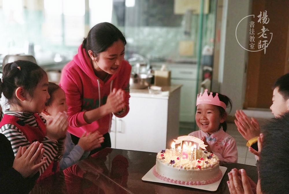 一凡在「楊老師書法教室」與老師和同學 度過了自己的五歲生日