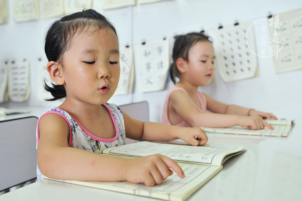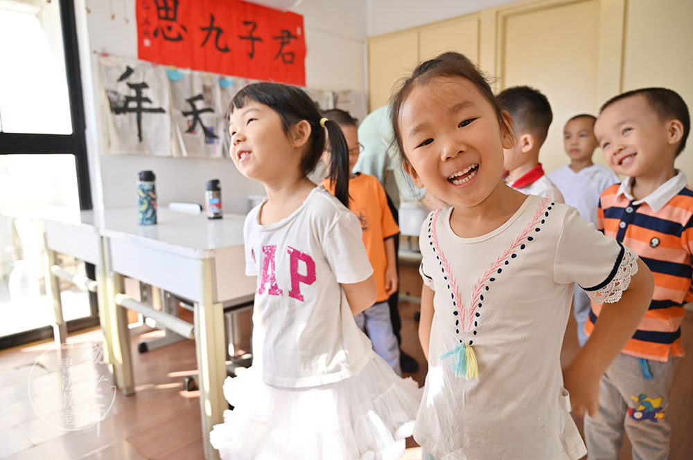 在這里,老師們教孩子寫字誦讀。每日清晨,孩子們在《弟子規》、《三字經》、《笠翁對韻》的朗朗讀書聲中開始一天的學習,之后練習軟筆書法。反復指讀后,孩子們能夠背誦長篇經典,同時在誦讀和寫軟筆大字的過程中也自然而然積累了識字量。