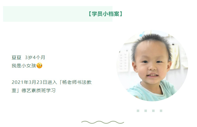 在這里,我想分享我們家寶貝豆豆(3歲4個月)在「楊老師書法教室」德藝素質班學習七個多月的變化和感受,真心誠摯地推薦各位家長帶寶貝來這里學習和生活。