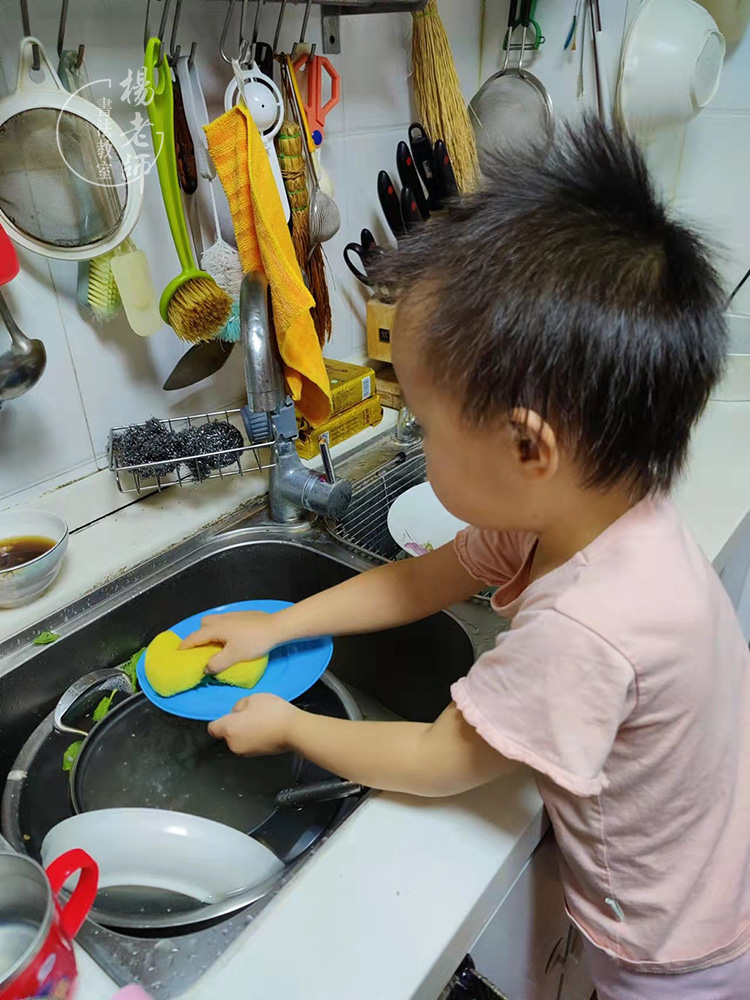 在生活能力上,豆豆的進步也很大。有一次我收拾孩子們夏天的衣服,孩子們也主動來幫忙疊衣服,豆豆疊得非常好,上衣和褲子都疊得很整齊,讓我很驚喜,因為我根本沒教她這些。這都歸功于老師將生活的教育落實到了課堂學習中。早上起床,豆豆也會自己穿衣服疊被子,看著她專注認真的樣子,“老母親”我可是非常欣慰呀!豆豆也非常喜歡給我幫忙,搶著洗碗、揉面、掃地等等。