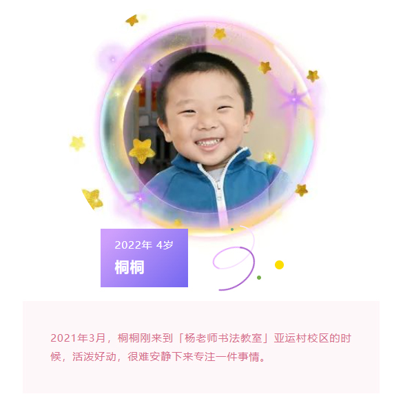 桐桐在彩繪的學(xué)習(xí)上,陪伴最多的是媽媽的付出與引導(dǎo),從每一幅圖上配有別出心裁的主題文字能看出,媽媽用了很多形象童趣的語(yǔ)言,啟發(fā)桐桐對(duì)圖案的認(rèn)識(shí),生動(dòng)的名字總是能使桐桐生起無(wú)窮的好奇心與動(dòng)力,使得彩繪作品絢麗多彩、明艷生動(dòng)。在班級(jí)群里交作業(yè),經(jīng)常會(huì)贏得大家的贊許與鼓勵(lì)。正是因?yàn)閶寢屧诩抑械姆e極配合,與書法教室教學(xué)理念、步調(diào)一致,才使得桐桐有了日新月異的變化。這份親師的配合,彌足珍貴!