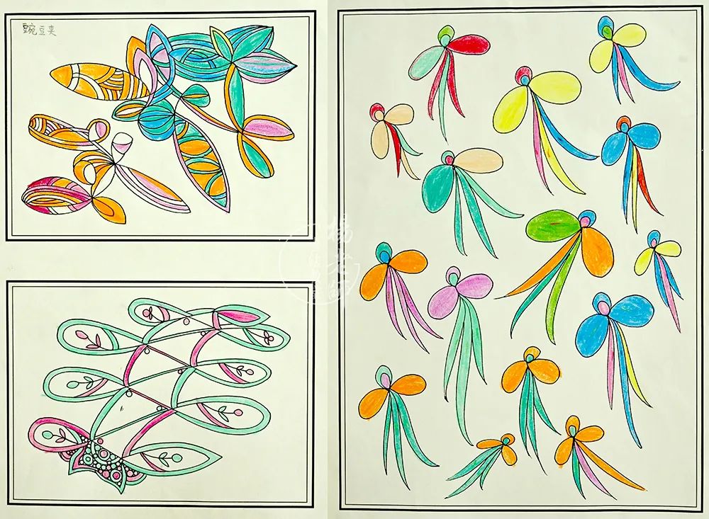 對(duì)于學(xué)前兒童,鍛煉的是在圖案基礎(chǔ)上,單純著重練習(xí)線條的排列和簡(jiǎn)單配色。扎實(shí)坐姿、握筆姿勢(shì)、控筆能力等基本功訓(xùn)練。即使色彩簡(jiǎn)單平鋪,更有其質(zhì)樸自然、純真爛漫之美!