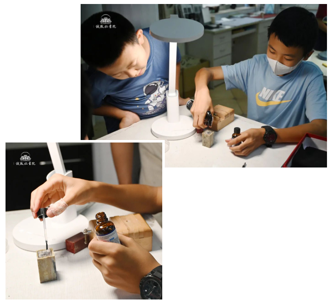 篆刻的學(xué)習(xí)中,一舉一動(dòng)都需要謹(jǐn)小慎微,不小心的磕碰有可能會(huì)面臨重新來過的教訓(xùn)哦~