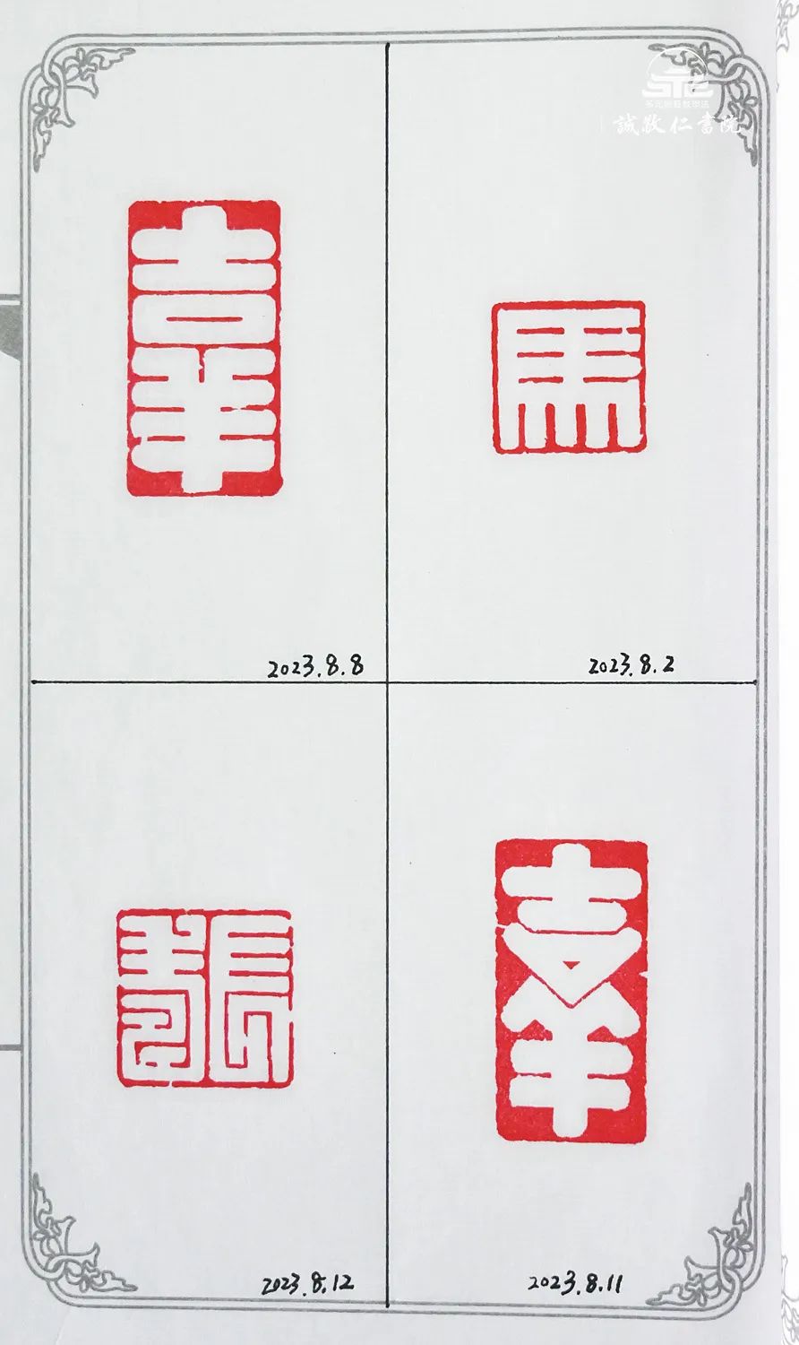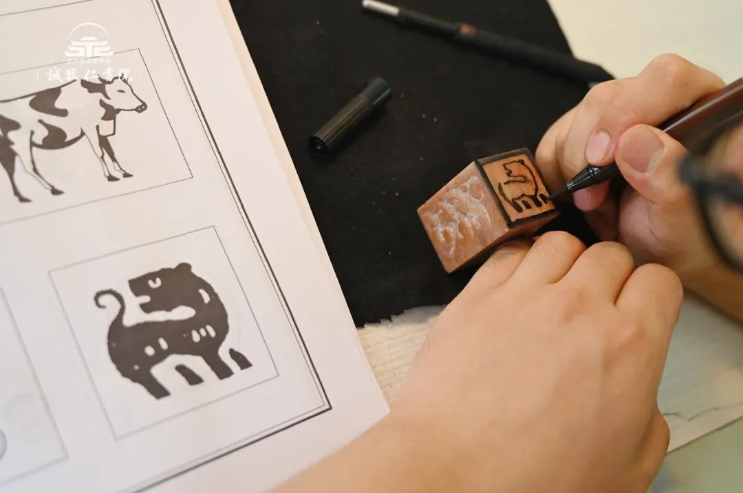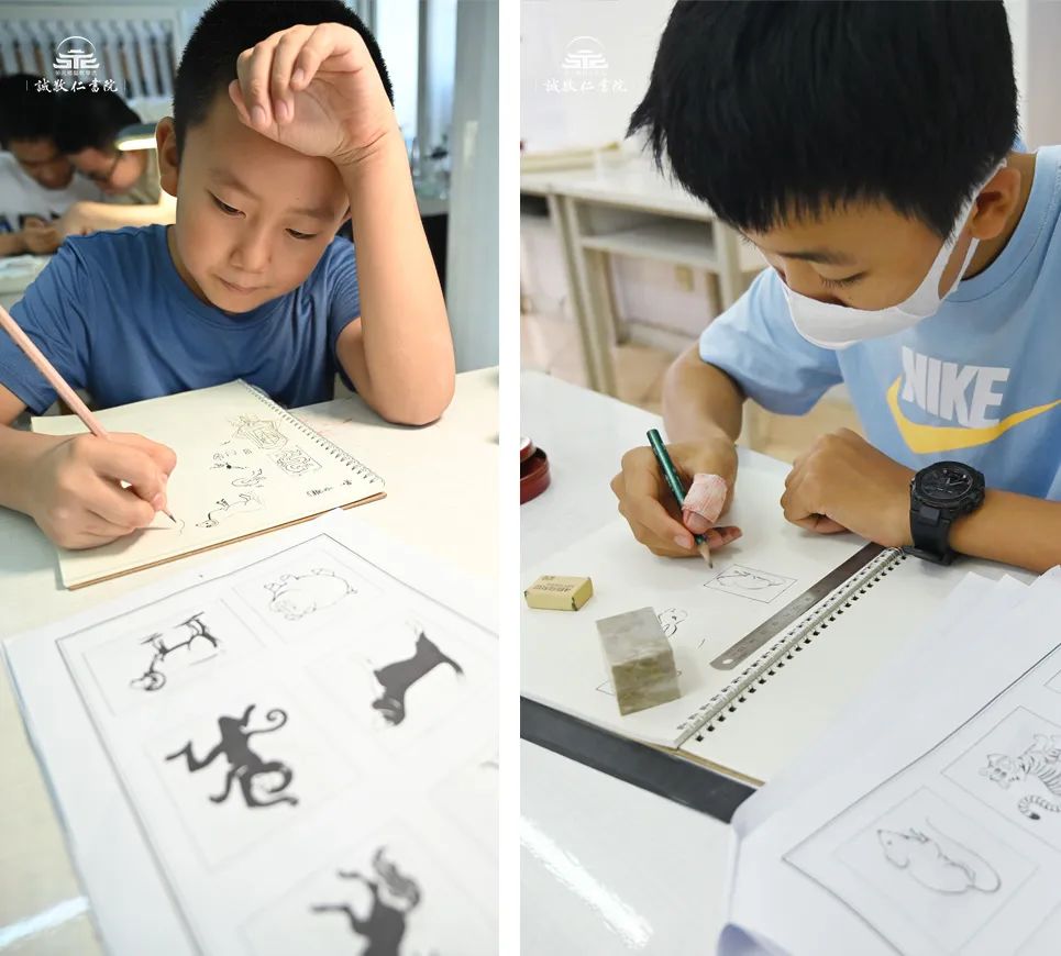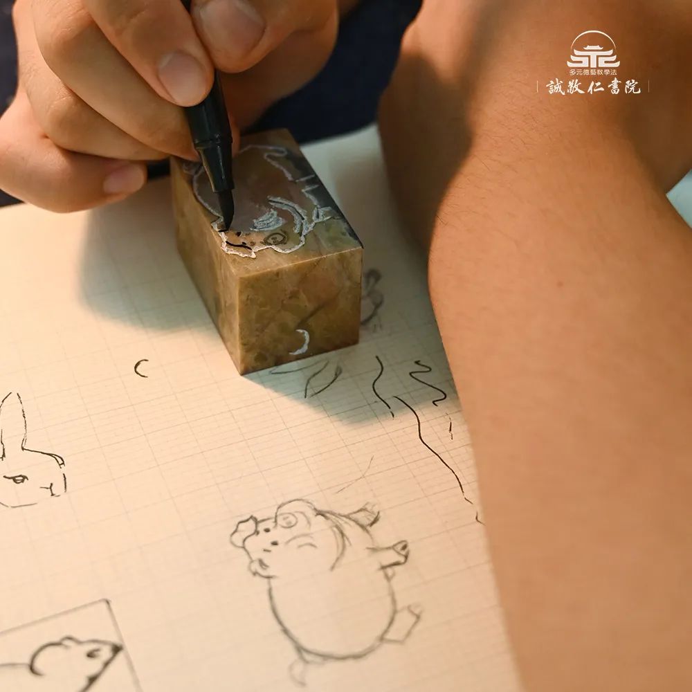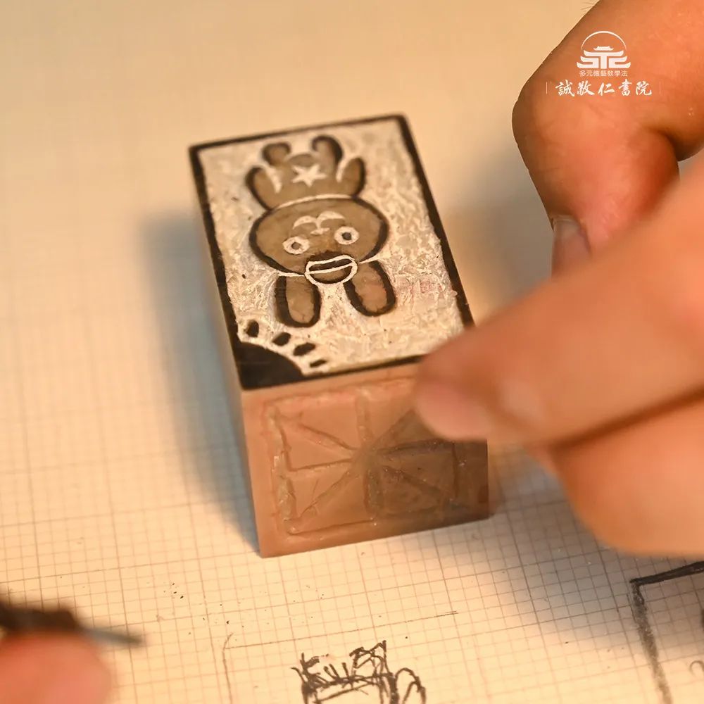 同學(xué)們從篆刻初階,將一個(gè)個(gè)小可愛們(動(dòng)物印章)刻在印石上,作為篆刻的基礎(chǔ)切刀法訓(xùn)練,待到刀法純熟后,再刻出功力深厚的名章、閑章等篆刻作品。整個(gè)篆刻學(xué)習(xí),輕松活躍,豐富的學(xué)習(xí)內(nèi)容讓你根本無暇顧及那些困難與挫敗,這就是篆刻的魅力所在!