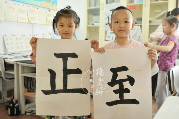生活中,從早上到校要向老師鞠躬問(wèn)好,向家長(zhǎng)鞠躬致謝、再見(jiàn);午餐前先要念感恩詞,用餐時(shí)時(shí)自己擺放餐具,飯后自己刷洗碗筷;學(xué)習(xí)擦桌子、掃地;老師還培養(yǎng)孩子們自己整理文具和書(shū)包。孝孝從小就是個(gè)比較懂禮貌的孩子,但是在書(shū)法班學(xué)習(xí)以后有了更明顯的變化,她的觀察力更強(qiáng)了,對(duì)事物對(duì)細(xì)節(jié)變化有了更敏銳的觀察。