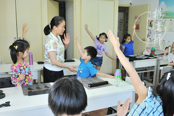 在家散漫慣了的孩子,進入課堂很難將心放在學習上,經常會出現抱怨或不喜歡學習,吵鬧著要回家的學生。這時,那些掛在墻上的作品就成為了榜樣,老師會指著那些字問: