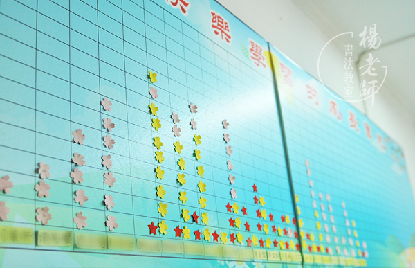 每天早上都會(huì)聽(tīng)到母親和老師在鼓勵(lì)慧慧:只要五天“不下雨”,“戴著太陽(yáng)”來(lái)「楊老師書(shū)法教室」,成長(zhǎng)墻上就會(huì)長(zhǎng)出慧慧的小花朵,她很期待,我們也很期待。