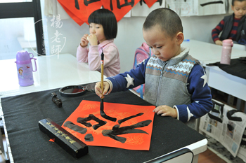 春節(jié)集福開始啦!「楊老師書法教室」這兩天格外熱鬧,紅色的祝福貼滿了教室,烘托出春節(jié)即將到來的火熱氣氛。