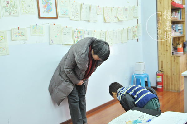 母親表示:學習書法,心態日趨平和,靜心修身養性,工作和生活更和諧了。女兒楊同學正為西城區藝術節準備作品。