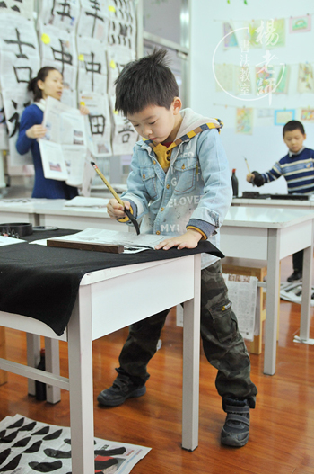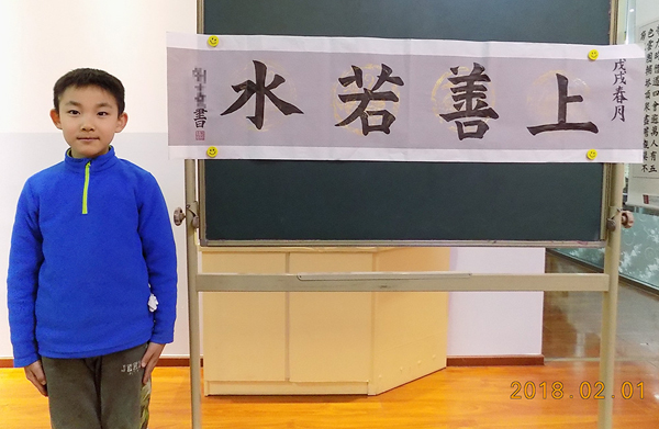 四年級的王同學,習書五年,正在練習對聯準備送給長輩和好友,王同學很認真地說:未學習書法前,心很亂,無所事事,學書法后,心安定了,還找到了“好朋友”!