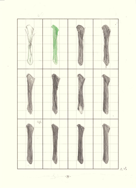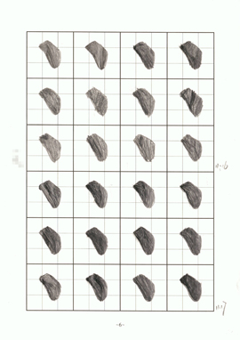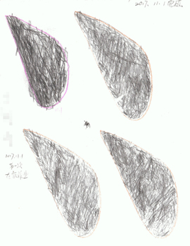 這是她前期描的「右側點」,細細觀察發現每一個「右側點」的完成時間間隔都很大,不難看出她不僅不能按時獨立完成作業,而且筆畫凌亂、躁動,好似車水馬龍,汽笛喇叭般的喧鬧。