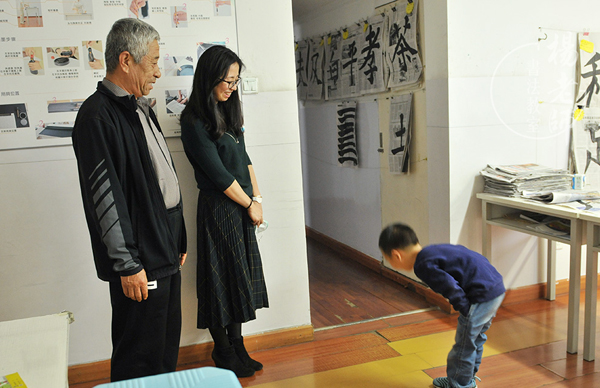 臨近放學(xué)時(shí),家長(zhǎng)們陸陸續(xù)續(xù)在「楊老師書(shū)法教室」門口等候,老師引導(dǎo)孩子們給家長(zhǎng)鞠躬問(wèn)候:“媽媽好!媽媽辛苦了!”家長(zhǎng)綻開(kāi)了幸福的笑臉,好像所有路途的奔波勞累瞬間消失了。是啊,因?yàn)楦改溉憧嗪粒⒆硬拍馨沧诔恋慕淌依飳W(xué)習(xí),體恤父母的辛勞,是每個(gè)孩子應(yīng)從小深植的孝心種子,這顆始于家庭的孝心種子,將繁茂于孩子為人處事時(shí)的仁愛(ài)友悌,庇蔭孩子一生。