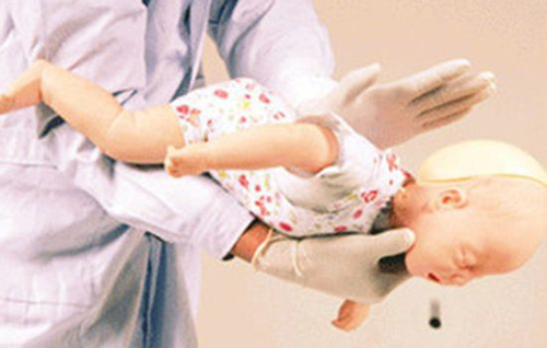 1.馬上把寶寶抱起來,一只手捏住顴骨兩側(cè),手臂貼著孩子的前胸;