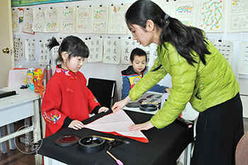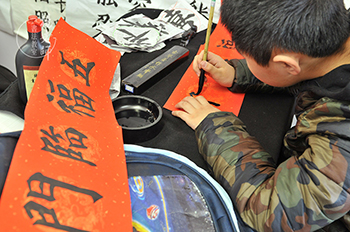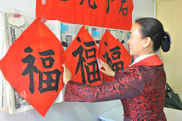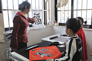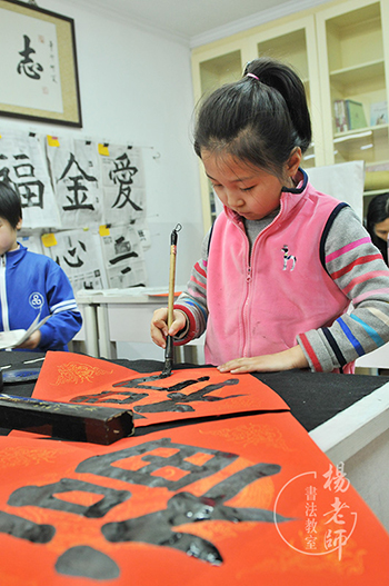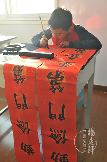 貼春聯是傳統春節中的重要標志,當人們在家門貼上春聯和福字時,意味著吉祥如意的新年已經迎面而來。傳統春聯是用毛筆書寫的,現今的電子時代,很難找到可以灑脫揮毫,貼上門面的春聯,不過無妨,在「楊老師書法教室」還能尋到濃濃古意與翰墨馨香,在書法教室里老師們會指導學員如何自己寫春聯,練制屬于自己的喜慶年味兒,以書自勵或奉送親朋好友,一起感受中國傳統文化的箴言魅力,履出德才兼備的新年新道路。