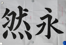 至今想起第一天練習(xí)點(diǎn)的情景,讓我久久難忘。桌上擺好文房四寶,提起毛筆手不停的抖,吸了一大口氣,心臟咚咚急速的跳動(dòng)。我鼓起勇氣蘸了很多墨汁,然后慢慢地把毛筆按在了紙上,全身僵硬加上手不停的抖,想把毛筆往下少移動(dòng)一點(diǎn),可它就是不聽(tīng)我的指揮。實(shí)在不行了,我就把毛筆提起來(lái)了,結(jié)果紙被墨汁濕透而且全破了——生平第一個(gè)點(diǎn)面目全非。就這樣,那一天好像堅(jiān)持寫(xiě)了20多張點(diǎn),基本上紙張都破掉了,雖沒(méi)有點(diǎn)到真正的右側(cè)點(diǎn),但不知為什么心是美滋滋的。