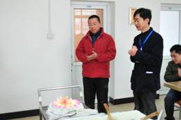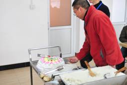 在閃爍的燭光前,兩位老師雙手抱拳于胸,默默地許下了自己心中最美好的祝愿,同時也表達了自己對父母的感激之情及對大家的深深謝意,之后為大家切開了香甜的生日蛋糕。