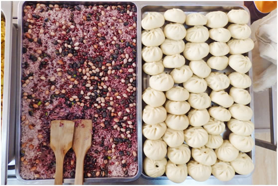 到了這里不行了,因為天天是全素食,沒有雞鴨魚肉,沒有雞蛋牛奶,也沒有蔥蒜調味。原本覺得自己要難熬一個月,沒想到第二天就適應了,雖然是全素,但是幾乎每天的菜都不重樣,而且餐廳的廚師也總是變著花樣為我們增加營養。除了主食饅頭,花卷,米飯,美味的素菜以外,還有一些可口的小菜以及一些我們意想不到的時令花樣,比如煮玉米棒子,蒸胡蘿卜,蒸地瓜或者南瓜等,雖說不吃肉了,但每頓的營養絕不遜色。