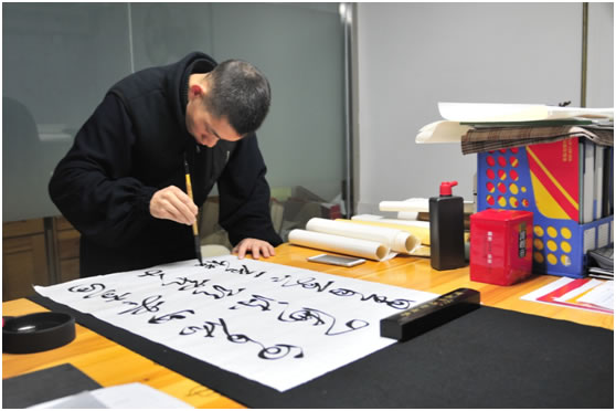 再次讓我大跌眼鏡,我有些看不懂了,我有些納悶怎么寫書法的高手都在干其他工作呢?后來了解多了后,我自己也笑了,原來這里幾乎人人都在練書法,從門口保安室到食堂,銷售部,再到房務部,財務部,培訓部乃至司機師傅,幾乎是人人都在練書法。每個部門都有書法高手。