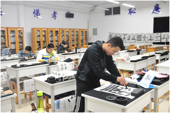 晚上,無論是去教室還是去宿舍,看到最多的場景就是大家凝神貫注的在練習毛筆書法。或點橫撇捺,或一筆一畫。