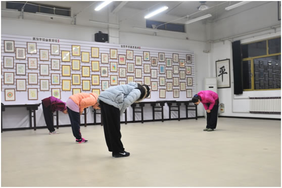 無論是在戶外還是在太極館,早晨你總能看到同學們矯健的身姿。在戶外,新六藝般的同學在短促有力的:1-2-1,1-2-1口令中,圍著小院跑步,連續至少跑十圈,很感覺這象軍訓,然而這是他們每天的必修課。