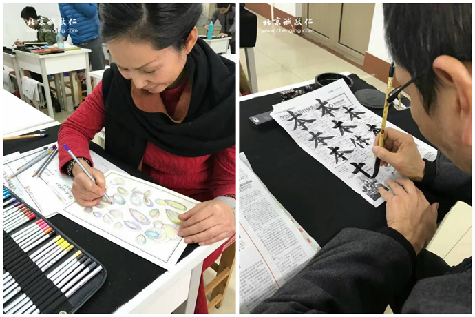 一個充滿文化氣息的、令人放松而專注的學習環(huán)境,無疑是一種強有力的熏陶。不但增上書藝之功,還有彩繪、硬筆國畫和定心描心讓自己的身心靈在墨韻中度過別樣的旅程。