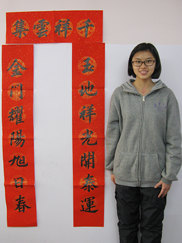 周同學今年17歲,上高一,是馬來西亞華裔。她是一個非常孝順的孩子,在學習之余,懂得體貼照顧媽媽,減輕媽媽的工作負擔。2012年12月開始學習書法,兩年基本功扎根之后,進步更快。2015年2月參加北京市書法節比賽,獲得提名獎,2016年元旦參加北京誠敬仁公司書法比賽決賽,獲得三等獎。